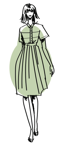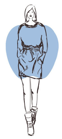 Тип А (груша): узкие плечи и небольшая грудь, выраженная талия и пышные бедра. Чтобы уравновесить верх и низ, подойдут модели с квадратным или V-образным вырезом и завышенной линией талии. Неплохо будет смотреться драпировка и пышная отделка верхней части одежды. Расклешенная юбка, особенно расширяющаяся от середины бедра, придаст вам хрупкости и изящества.