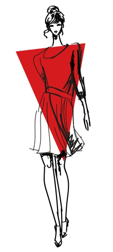 Тип V (перевернутый треугольник): спортивная фигура с широкими плечами и более узкими бедрами. Самые подходящие фасоны с заниженной талией или в виде трапеции. Также уравновесят пропорции оборки на бедрах, расширенные юбки, открытые плечи или одно плечо. Выделите зону декольте, выбрав наряд с глубоким V-образным вырезом. Хорошо дополнят туалет длинное ожерелье или шарф.